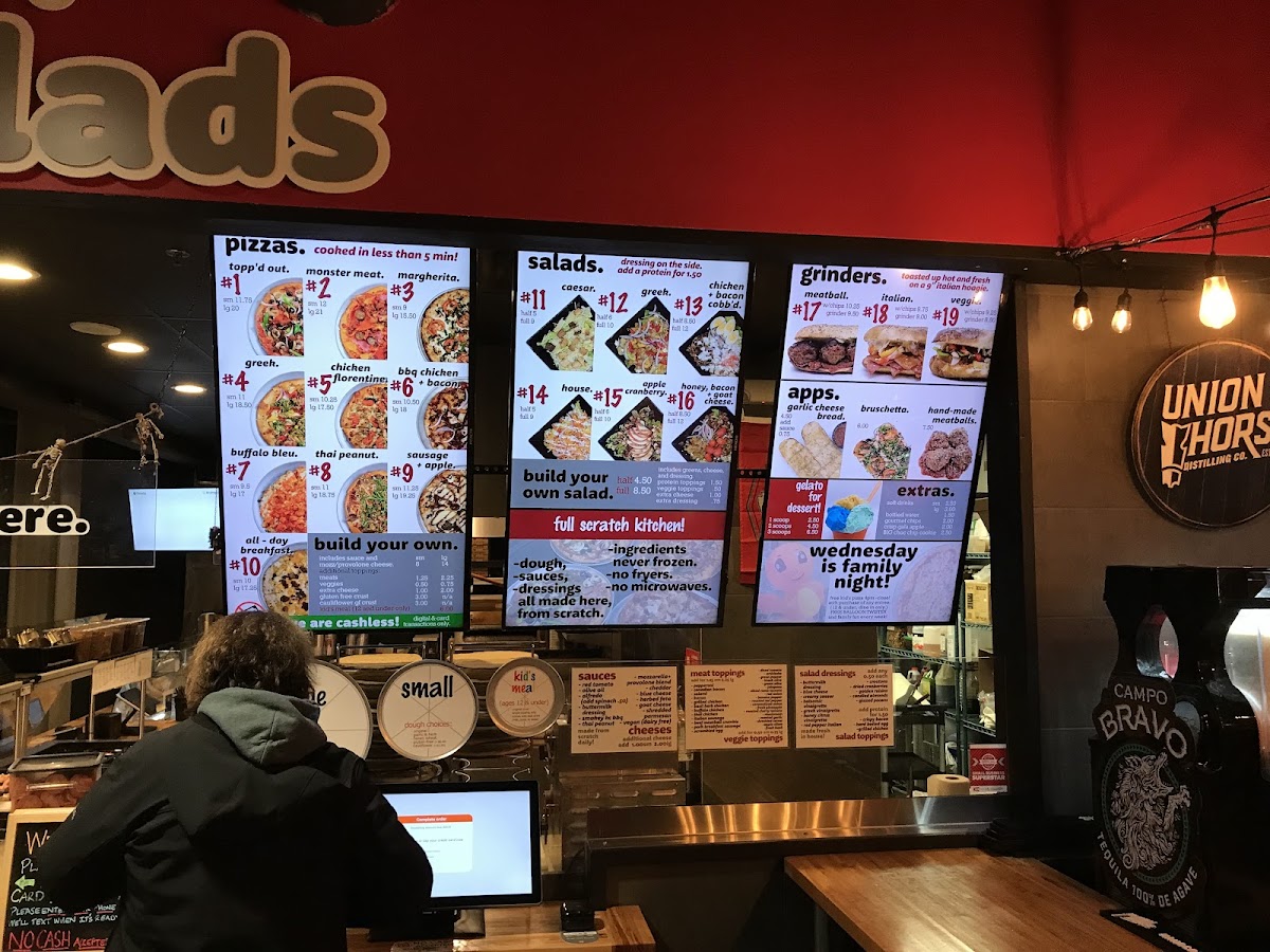 our topp'd out pizza for the price of a cheese pizza! comes with red tomato sauce, mozzarella/provolone, pepperoni, sausage, meatball, mushroom, green pepper, red onion, black olive.